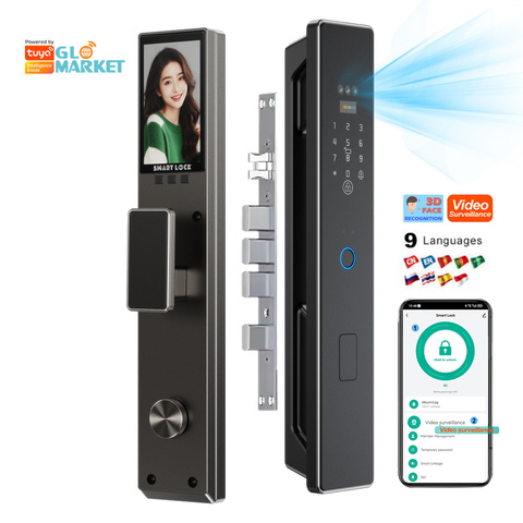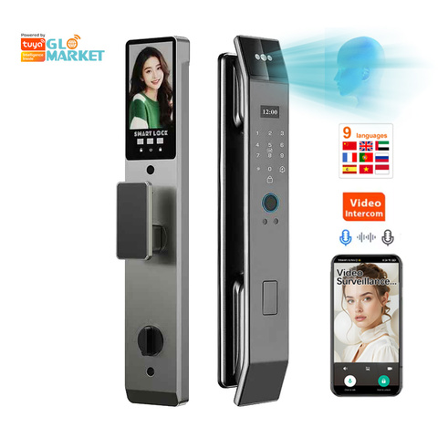 جلوماركيت التعرف على الوجه البيومترية ، تويا فيديو إنتركوم واي فاي ، قفل رقمي تلقائي بالكامل ببصمة الإصبع