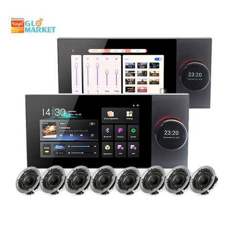 Çok fonksiyonlu kontrol paneli 8 kanallı duvar amplifikatörü İki bölgeli oynatma 7 inç dokunmatik ekran akıllı arka plan müzik sistemi